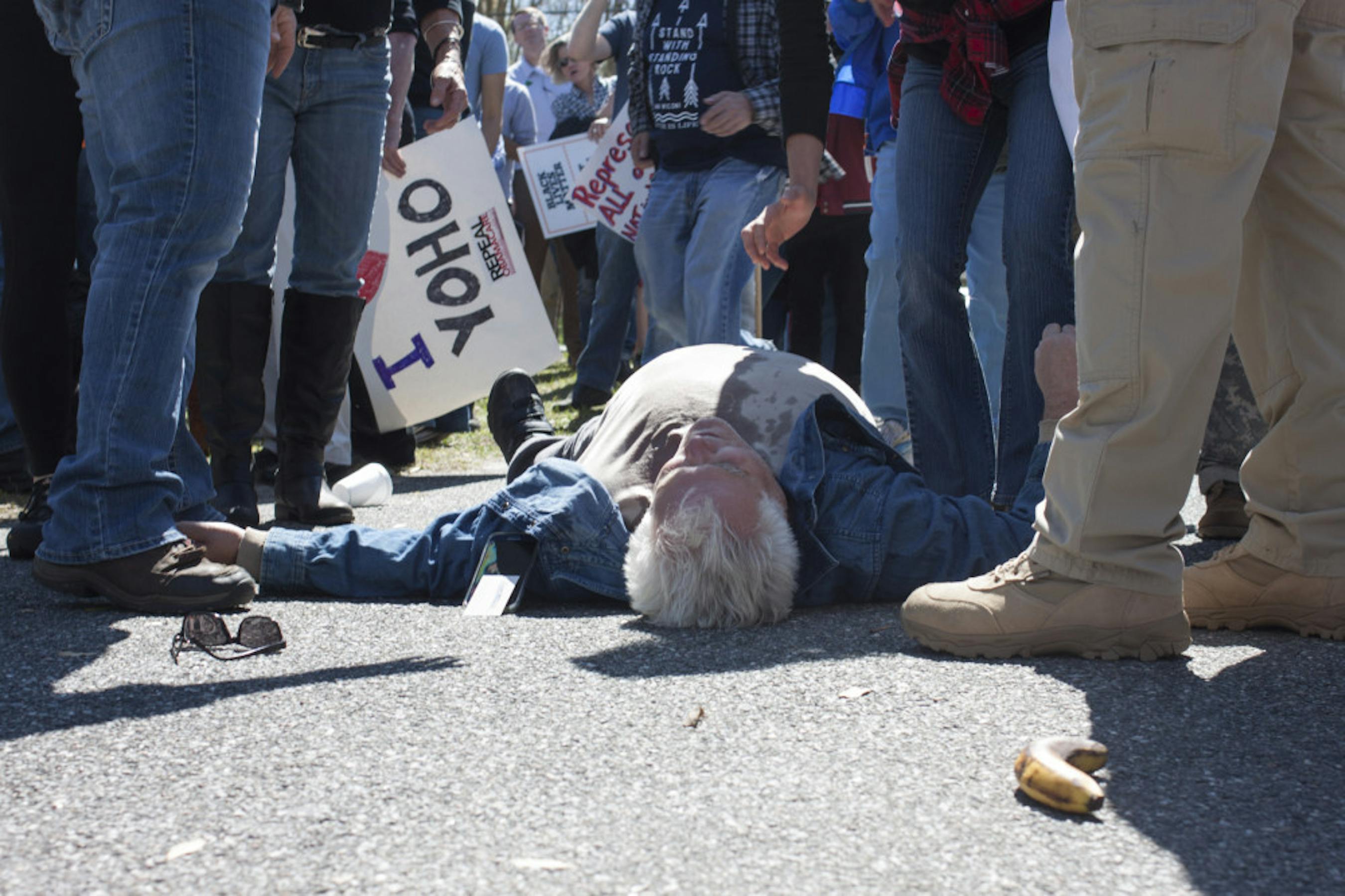 Deputies arrested a man March 4 after he punched a President Donald Trump supporter in the face after an argument outside Countryside Baptist Church.