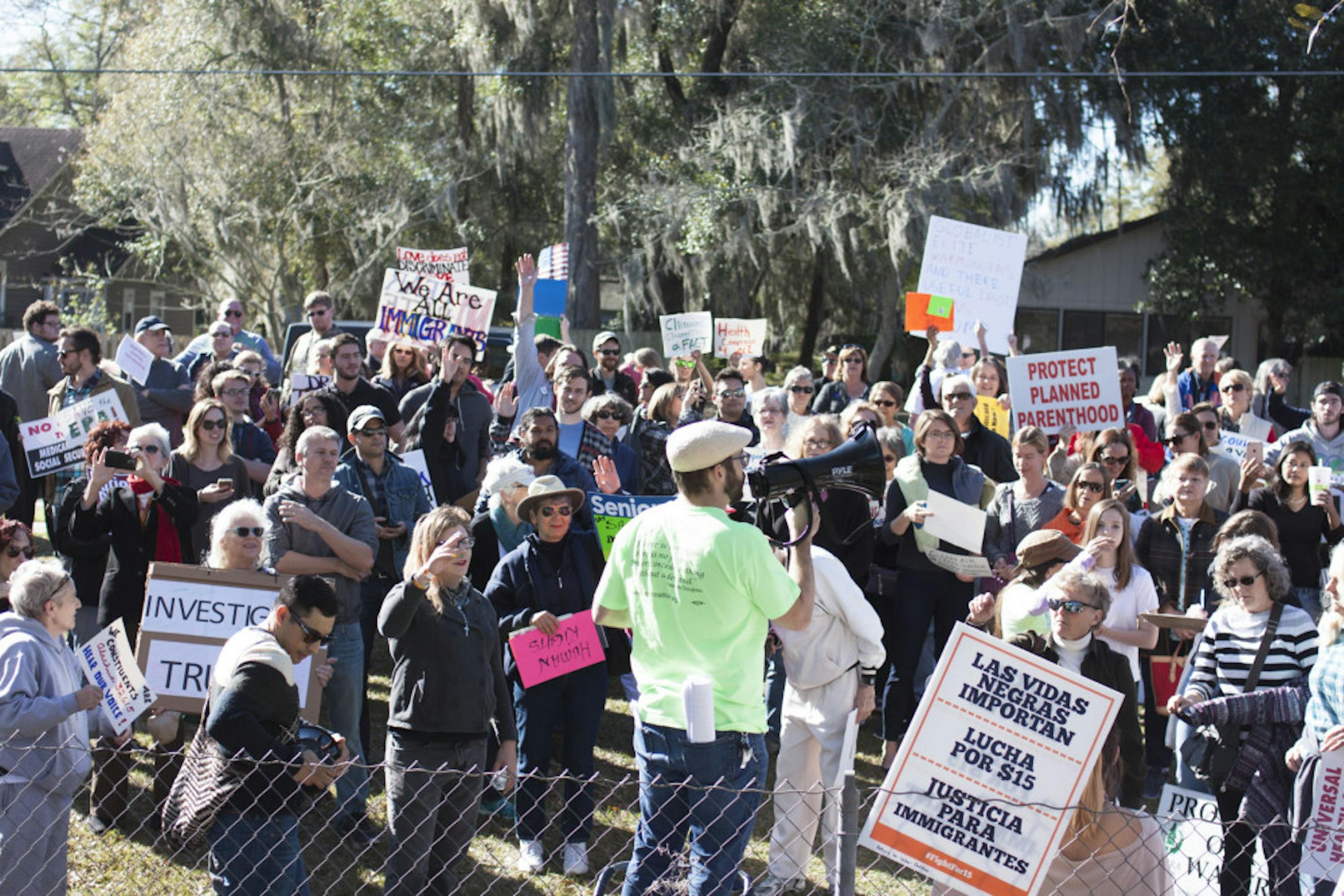 Michael Robert Chriss, 64, punched Charles Duane Webster, 61, as the two joined a crowd of hundreds outside the church, located at 10926 NW 39th Ave. The crowd, primarily protesters, gathered following a town hall meeting with Rep. Ted Yoho in the church. Yoho, a Republican who represents Florida’s 3rd Congressional District, which includes Alachua, Clay and Bradford counties and parts of Marion County, answered questions about issues such as Trump’s temporary travel ban, health care, LGBTQ+ rights and the alleged ties between the president’s administration and Russia. The protesters were not allowed inside the town hall and, instead, chanted and waved signs. - Meryl Kornfield