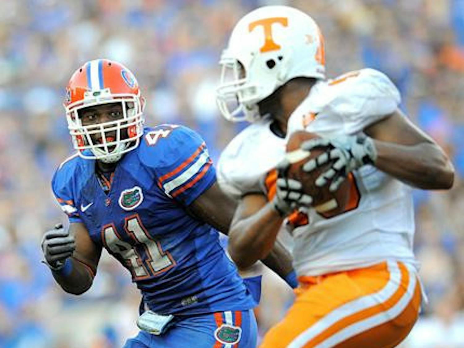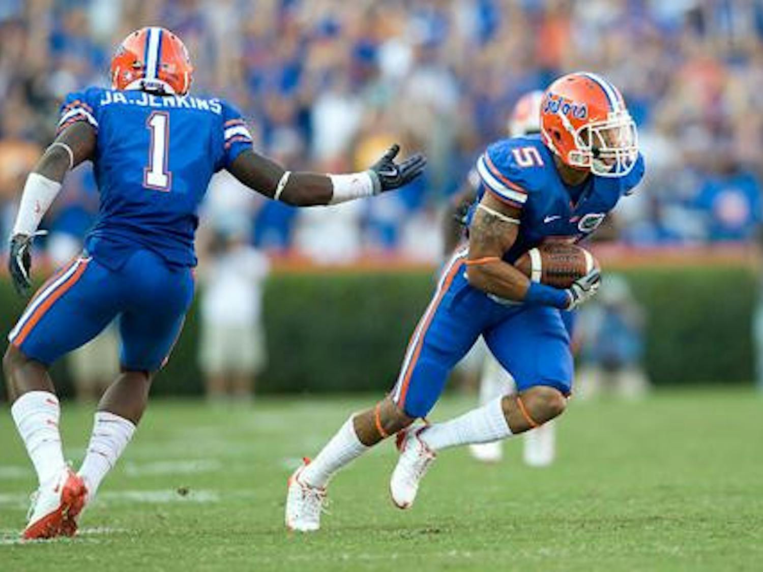 Sep. 25, 2009UF running back Chris Rainey blocks Kentucky punter Ryan Tydlacka's punt during the Gators' 41-7 win against the Wildcats in Lexington, Ky., on Saturday. Rainey recovered it for a touchdown. (Harrison Diamond / Alligator Staff)