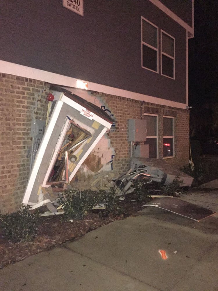 Residents in one building at The Ridge at Gainesville are without power after a Gainesville man crashed a stolen car into the apartment complex near Butler Plaza, Gainesville Police said.