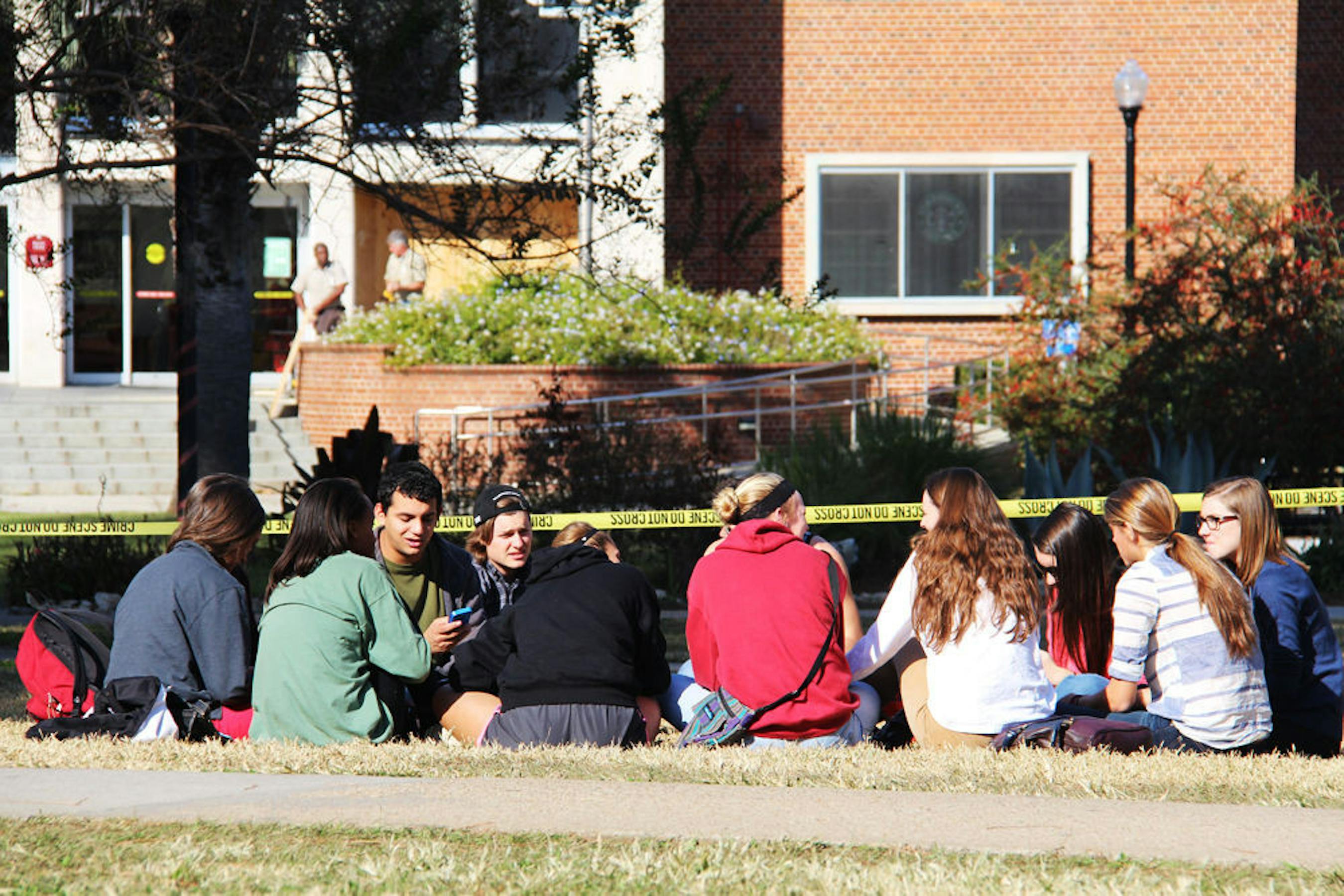 Students, faculty and members of the Florida State University community gather together to pay respects at a candlelight vigil for students injured in Thursday morning's campus shooting.