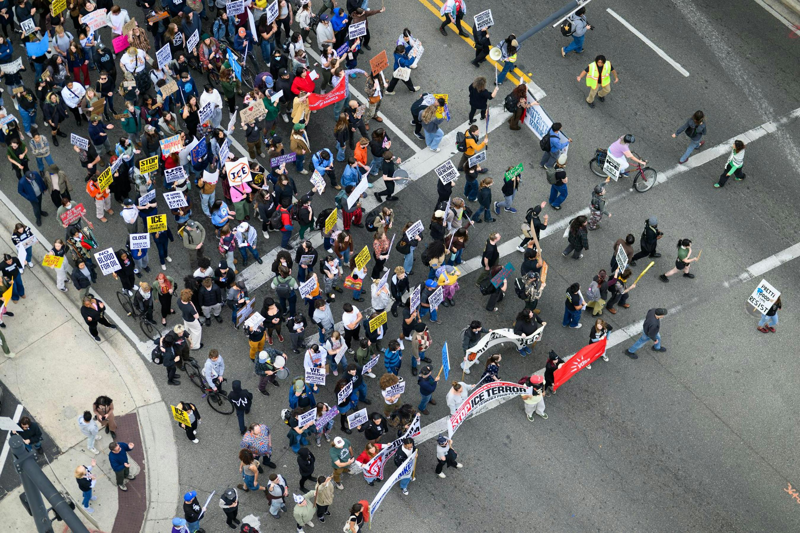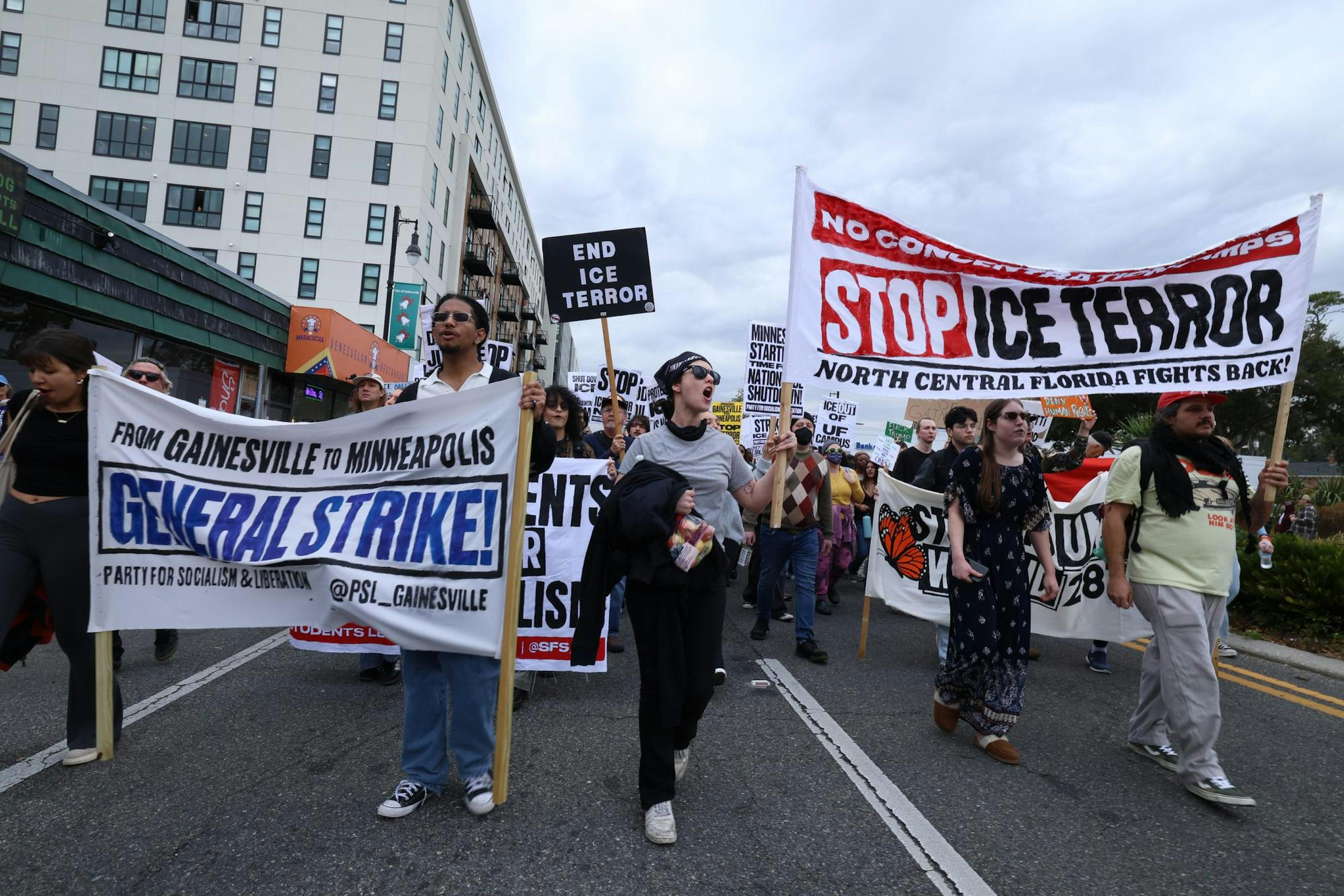 About 300 people gathered on 13th Street and University Avenue at 3 p.m. Friday afternoon, walking out of work and school as part of a nationally organized day of action to protest U.S. Immigration and Customs Enforcement.
