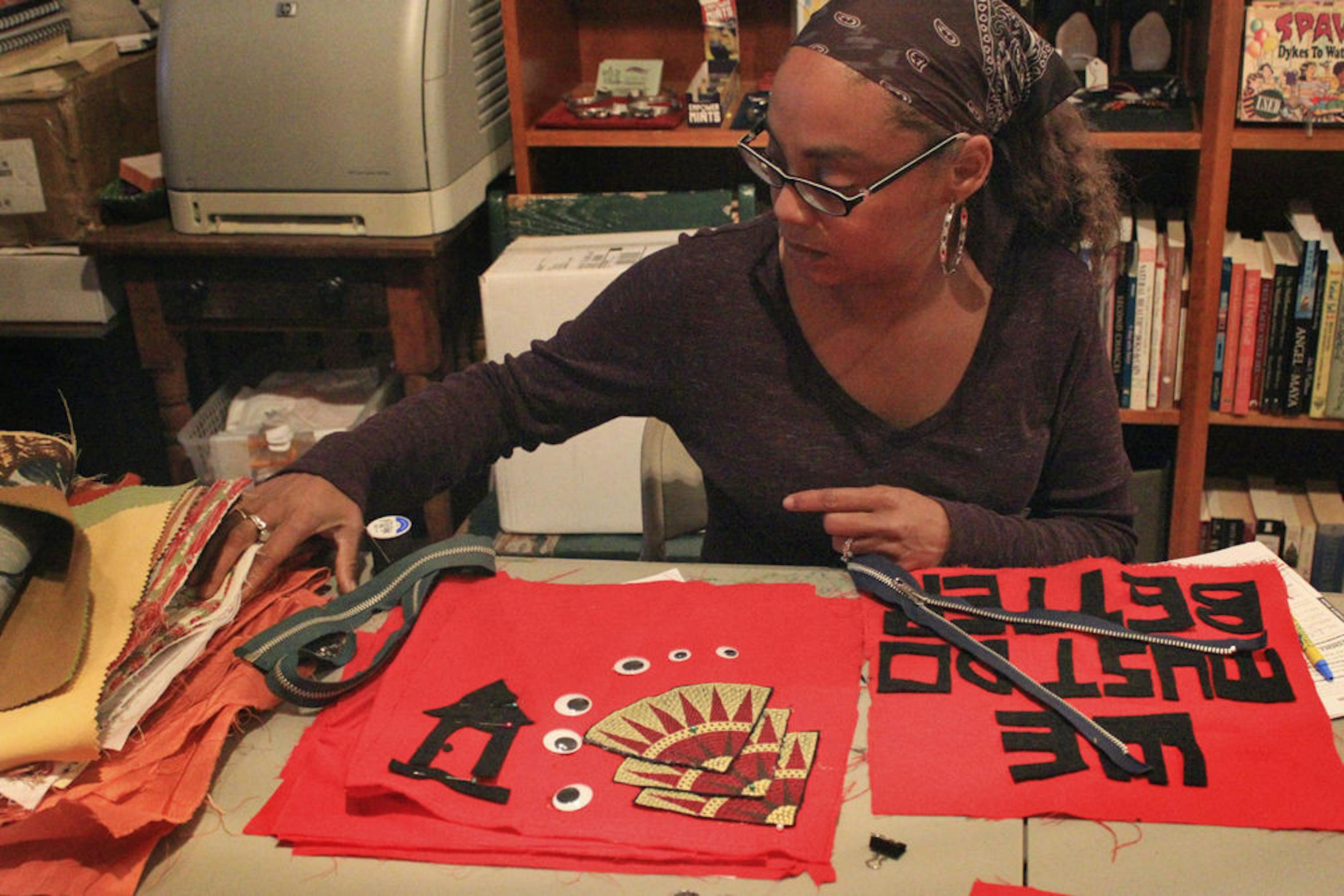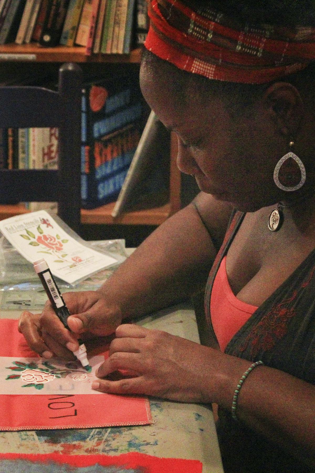 Sexual assault survivors came together to quilt their stories on Monday evening at Wild Iris Books, a feminist bookstore at 22 SE Fifth Ave. The evening was the last of three monthly workshops at Wild Iris, where participants created squares for The Monument Quilt, a project that collects stories from rape and abuse survivors on red fabric squares and displays them in public spaces around the U.S