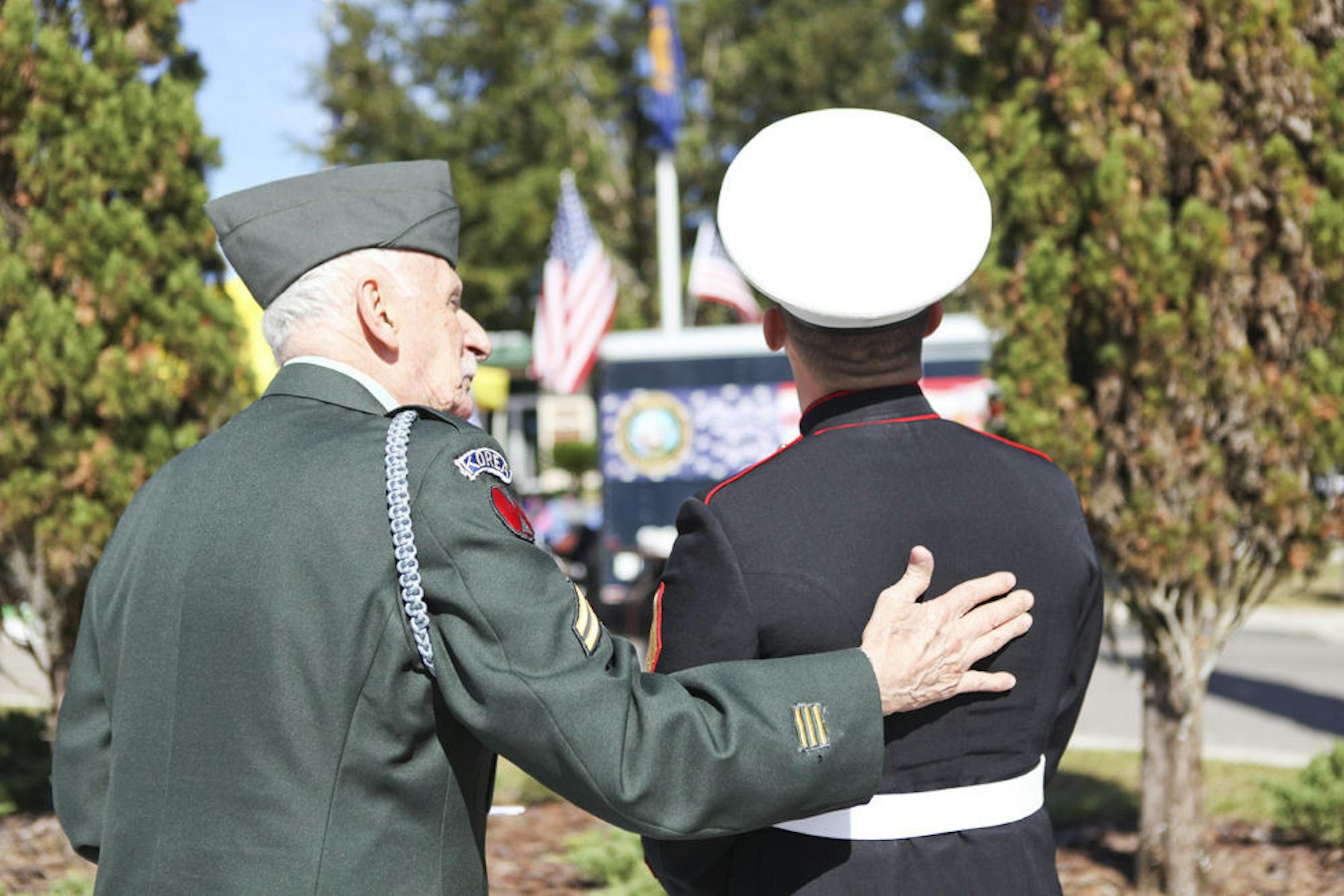 Among the many Veterans Day celebrations Tuesday across Gainesville and Alachua County, the Kanapaha Botanical Gardens held a ceremony at the Alachua County Veterans Memorial at 10:30 a.m. It was open to the public and free to active and retired military personnel. Those in attendance enjoyed a drill team demonstration, flag and wreath-laying ceremony and musical tributes. Children and teenagers from both the Milton Lewis Young Marines and the Billy Mitchell Drill Team participated in the services.
