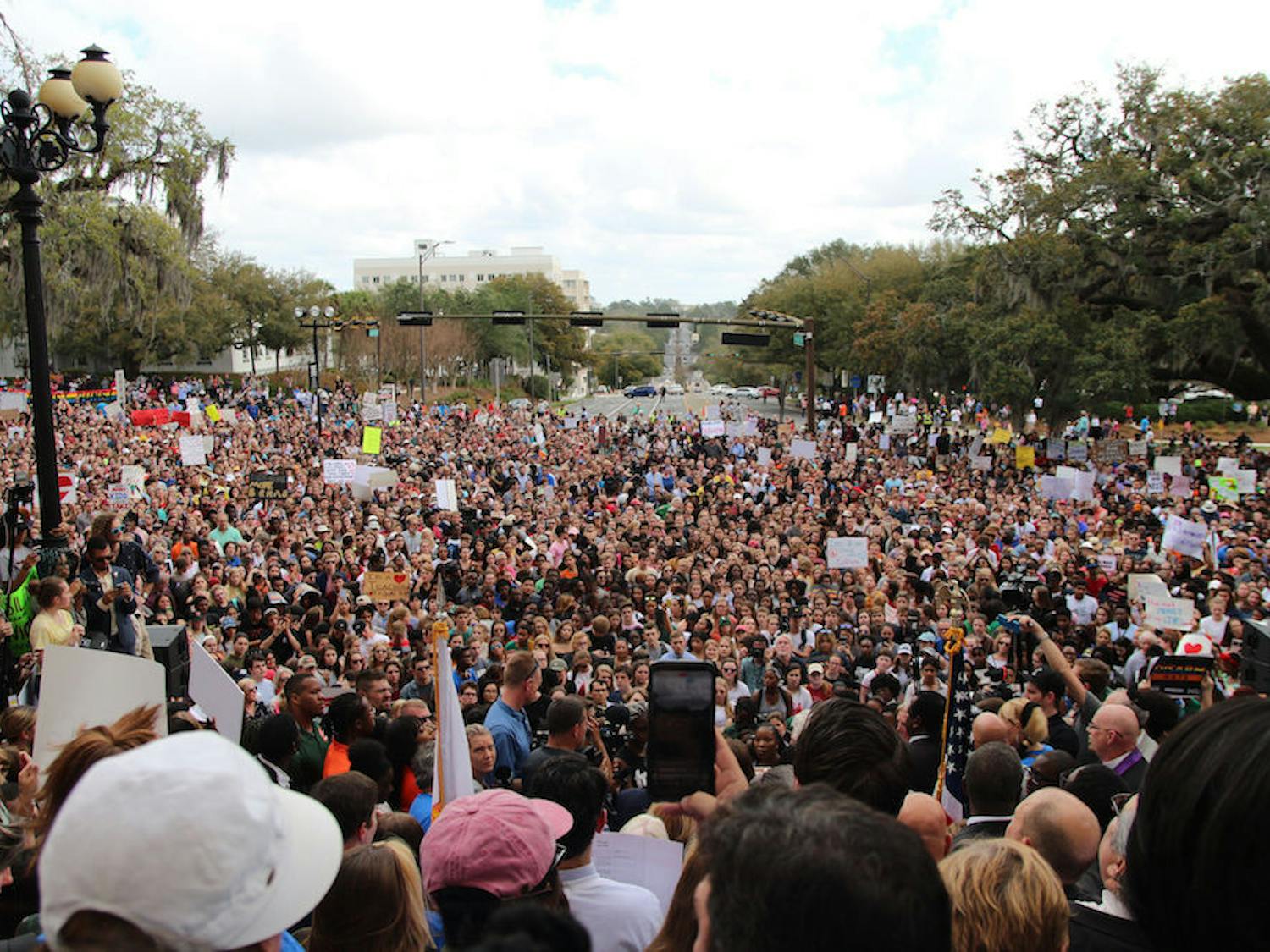 Jan. 21, 2018About 450 people met on Bo Diddley Community Plaza on Sunday for Gainesville's "Celebration of Women" event commemorating the one-year anniversary of the Women's March in Washington, D.C.
