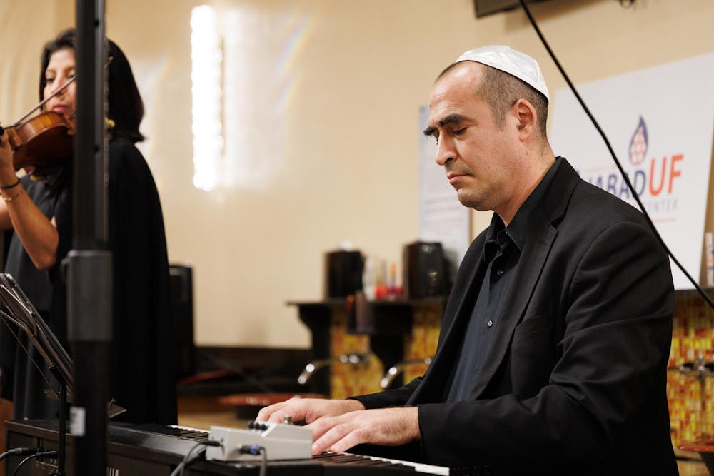 Zac Chester plays the piano at an International Holocaust Remembrance Day event at the Chabad UF Jewish Center in Gainesville, Fla., Wednesday, Jan. 21, 2026.