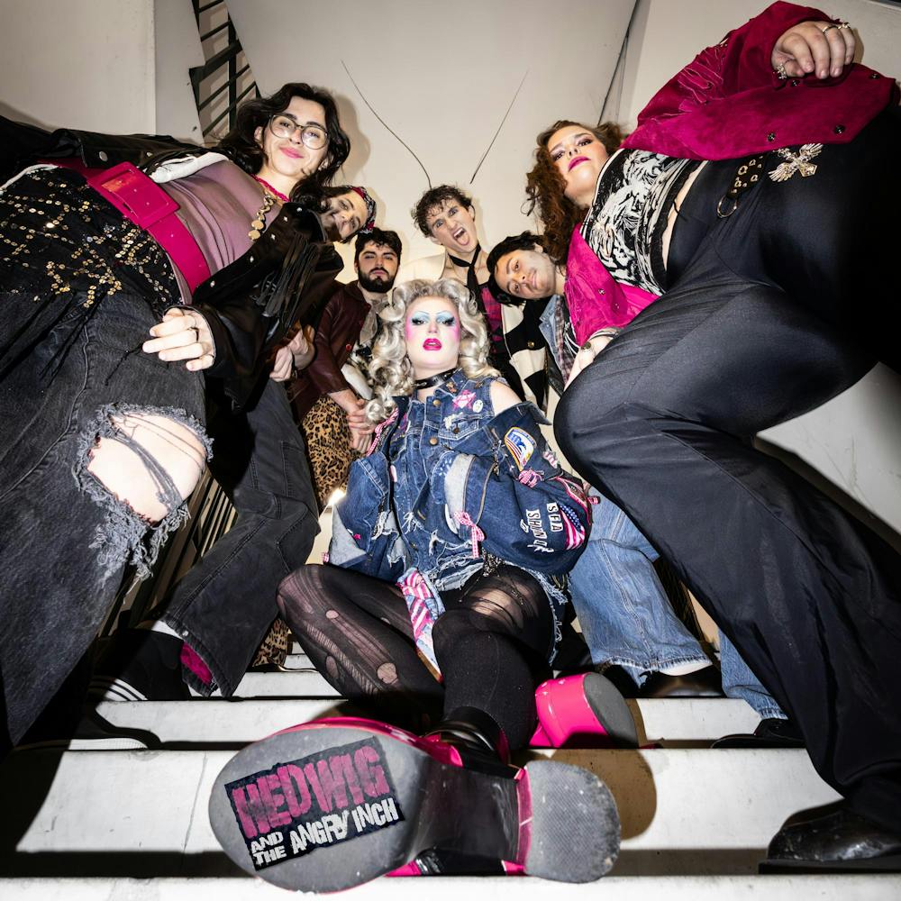 Nicholas Hart and Cooper LaMontagne play guitar together at a rehearsal of Hedwig and the Angry Inch on UF Campus, Wednesday, February. 11, 2026, in Gainesville, Fla.