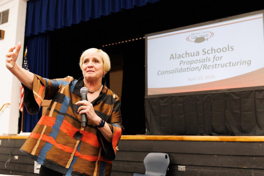 By Caroline Walsh | 7:07pmAlachua County Superintendent Kamela Patton speaks at a community rezoning input meeting at A.L. Mebane Middle School in Alachua, Fla., Monday, April 13, 2026.