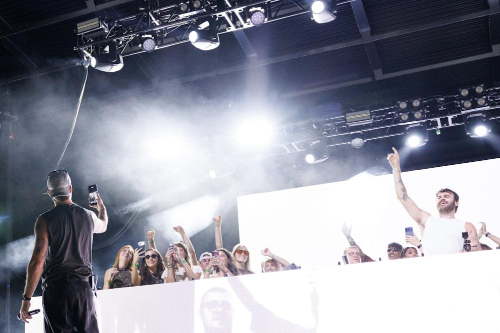 Andrew Taggart of The Chainsmokers takes a video with the crowd during SwampFest, Tuesday, April 14, 2026, in Gainesville, Fla.
