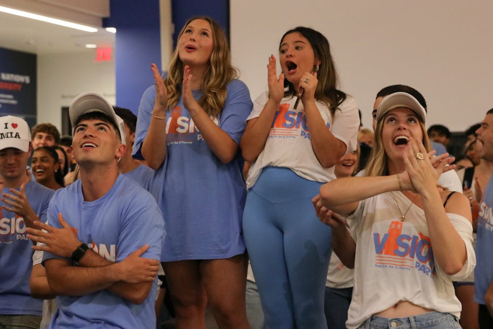 Vision Party celebrates its 49-seat win during the Fall 2025 Student Government elections at the Reitz Union on Tuesday, Sept. 30, 2025.
