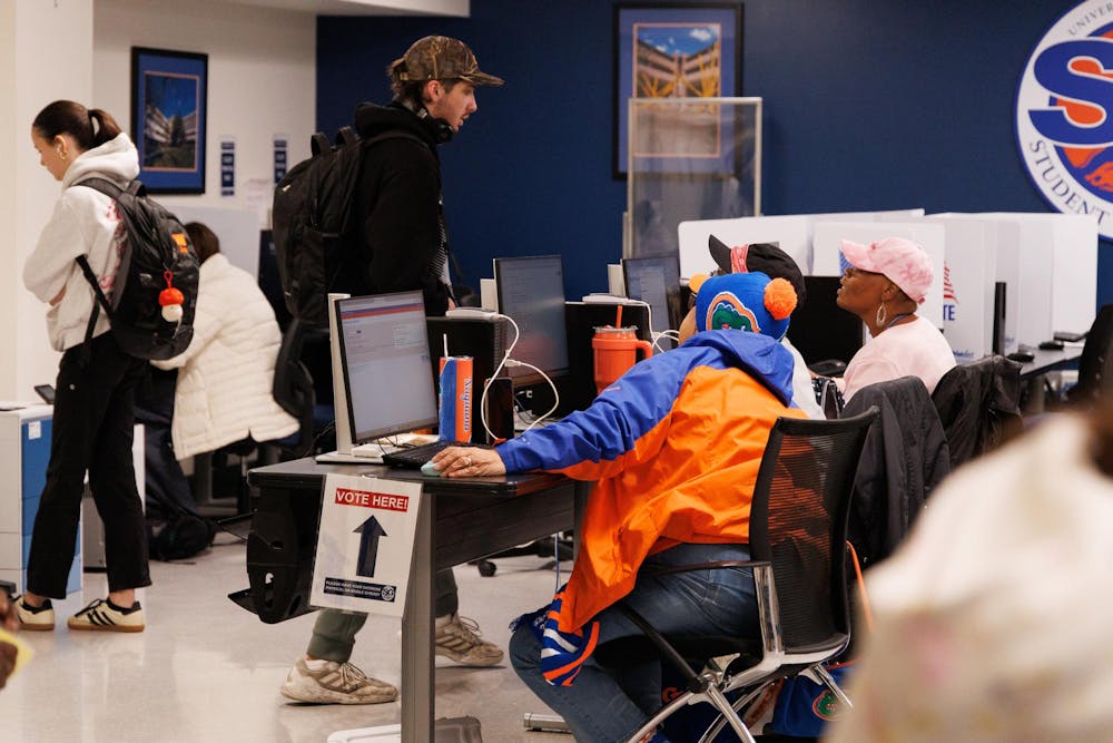 By Caroline Walsh | 1:20pmUniversity of Florida students wait in line to vote in the Spring UF Student Government election at the Education Library at the University of Florida, Tuesday, Feb. 24, 2026.