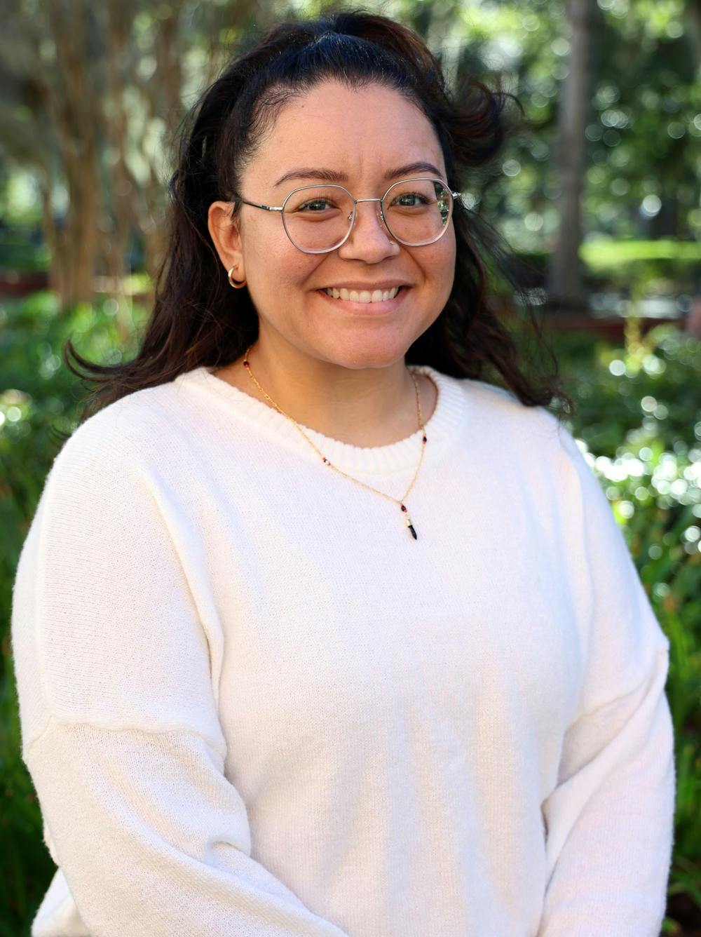 Gloria Picaso stands in Plaza of the Americas on the University of Florida's campus on Thursday, Oct. 30, 2025.
