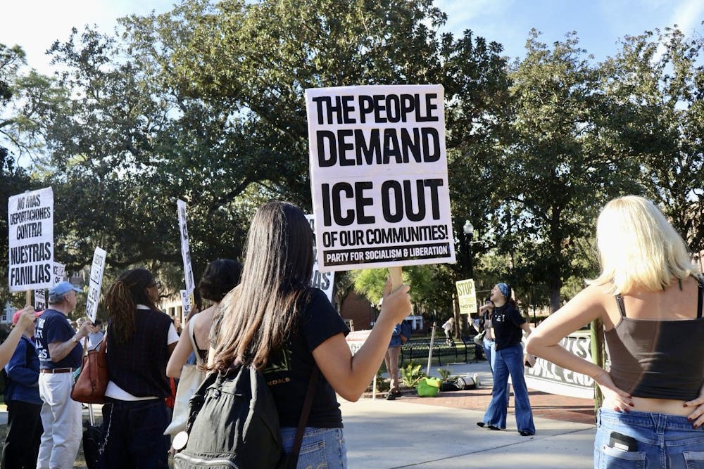 UF students walk out in protest of ICE raids in Minneapolis, Minn. The demonstration took place on Plaza of the Americas in Gainesville, Fla., Friday, Jan. 23, 2026.