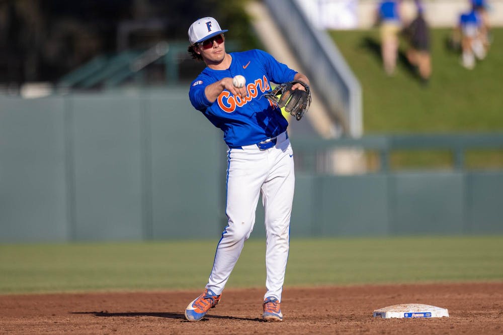 Florida infielder Brendan Lawson (11) throws the ball infield during an NCAA college baseball game against Auburn at Condron Family Ballpark in Gainesville, Fla., Friday, April 17, 2026.