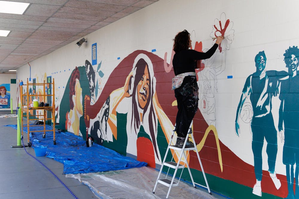 Jenna Horner, program director of Mindful Messages, paints a mural at East Side High School in Gainesville, Fla., Wednesday, March 11, 2026.