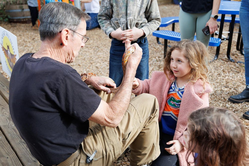 By Caroline Walsh | 6:16pmSunrise Wildlife Rehabilitation director Joe Soistman holds Kernel, a corn snake, while Stacy Richards pets the snake at the Florida Master Naturalist Program’s 25-year anniversary celebration in Gainesville, Fla., Saturday, Jan. 17, 2026.