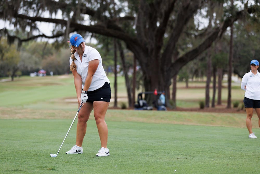 Florida’s Megan Propeck sets up her shot during the Gators Invitational, an NCAA golf tournament, at the Mark Bostick Golf Course, Friday, March 6, 2026, in Gainesville, Fla.