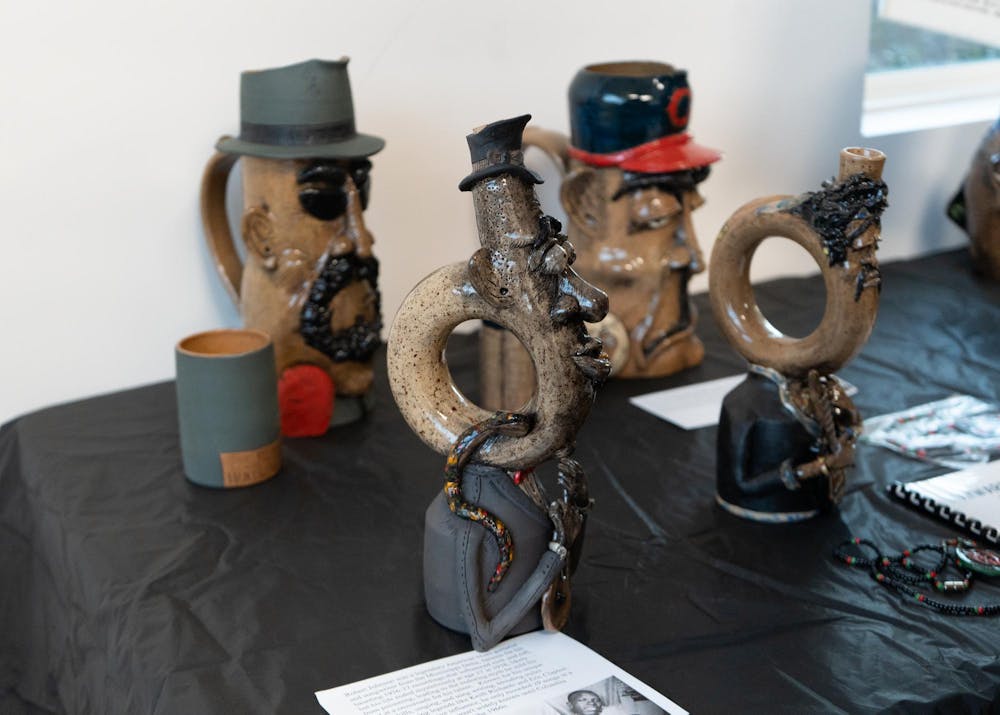 Pottery by Randy Adams sits on display at the Oakview Community Center for the Celebration of Black Love, Art, and Poetry event, Saturday, Feb. 7, 2026, in Gainesville, Fla.