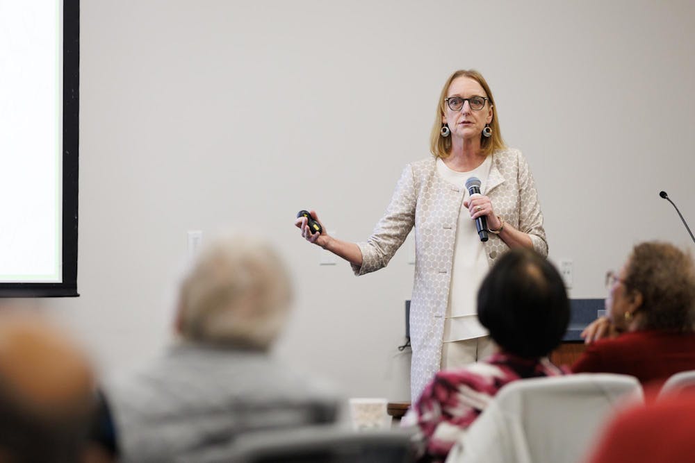 Professor Lyrissa Lidsky delivers a presentation at the Straughn Professional Development Center, Wednesday, Jan. 21, 2026.