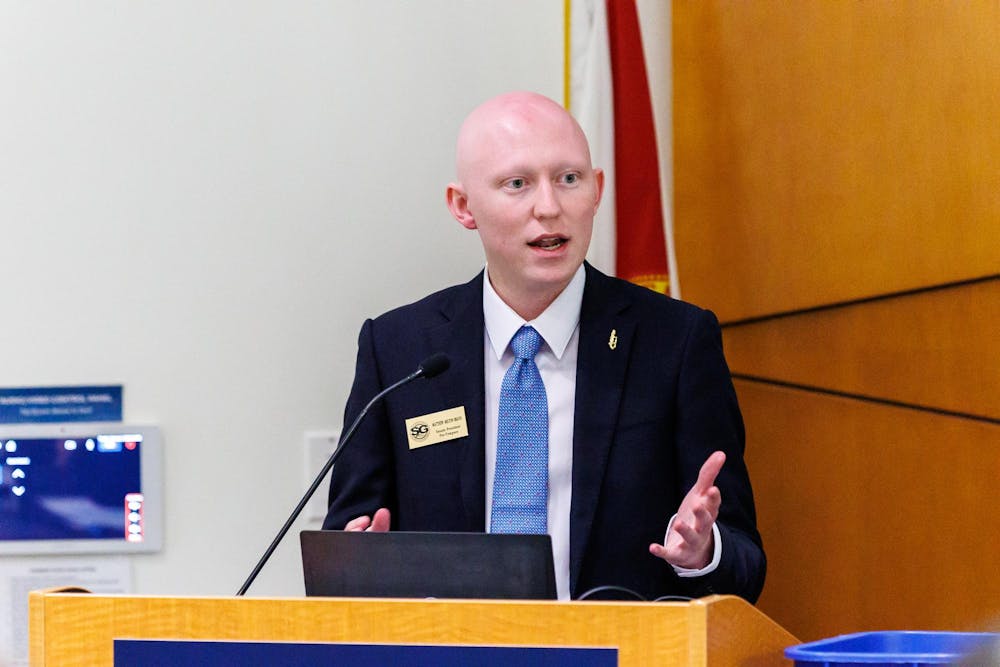 University of Florida student government Senate President Pro Tempore Matthew Bravo speaks during a student senate meeting, Tuesday, Feb. 3, 2026, in Gainesville, Fla.
