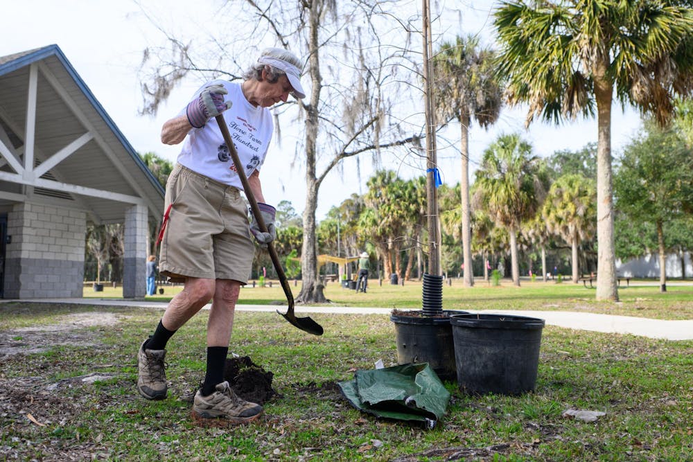 By Noah Lantor | 1:59pmJihwan Kim, a tree planting volunteer, digs a hole during an Arbor Day festival at Earl P. Powers Park in Gainesville, Fla., Saturday, Jan. 17, 2026.