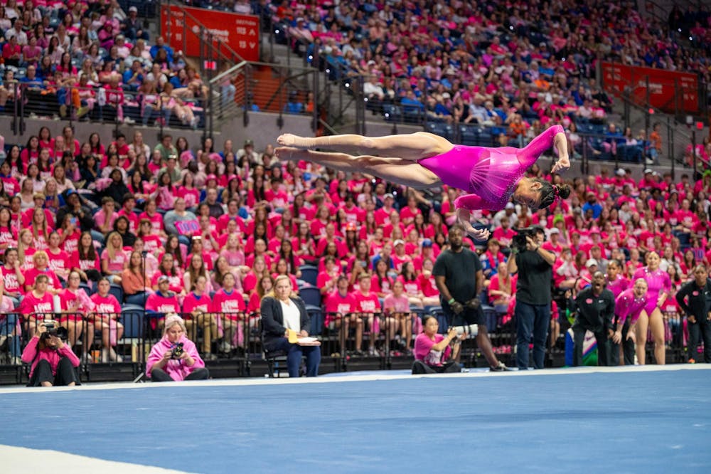 Florida gymnast Kayla DiCello performs on the floor during an NCAA gymnastics meet against Oklahoma, Friday, Feb. 13, 2026, in Gainesville, Fla.