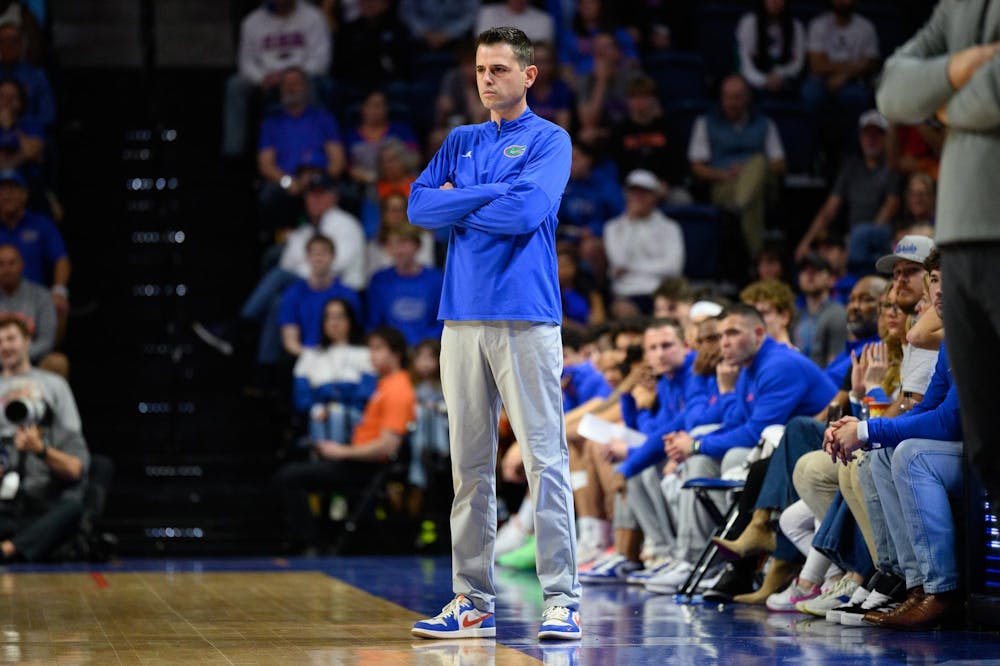 Florida head coach Todd Golden watches his defense during the second half of an NCAA college basketball game against Auburn, Saturday, Jan. 24, 2026, in Gainesville, Fla.