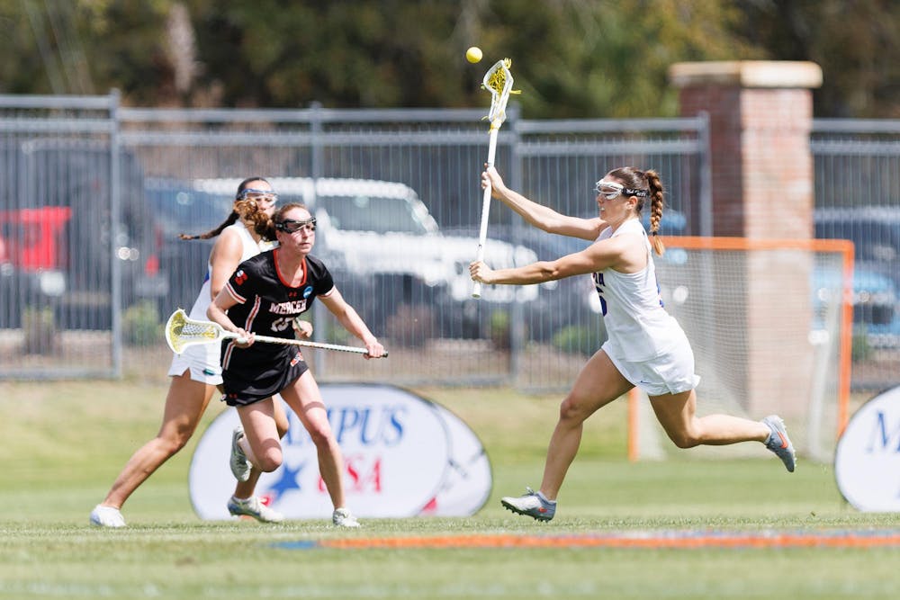 Florida midfielder Kaitlyn Davies (5) passes during the first quarter of an NCAA women’s lacrosse gmae against Mercer, Saturday, March 07, 2026, in Gainesville, Fla.