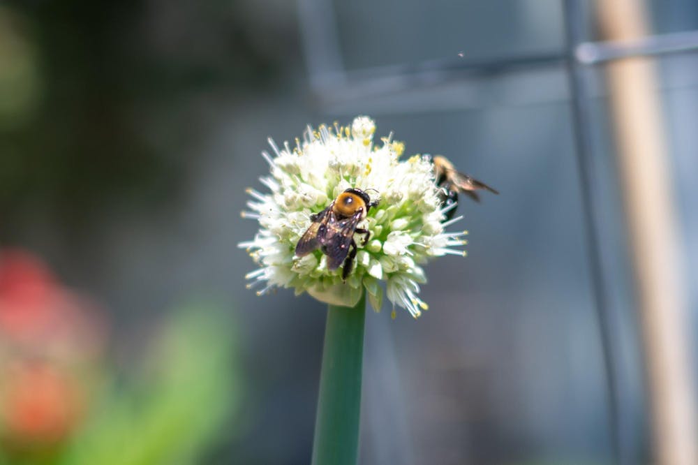 Bees pollinate flowers in a garden in the Oak Hammock Community in Gainesville, Fla., Friday, April 17, 2026.