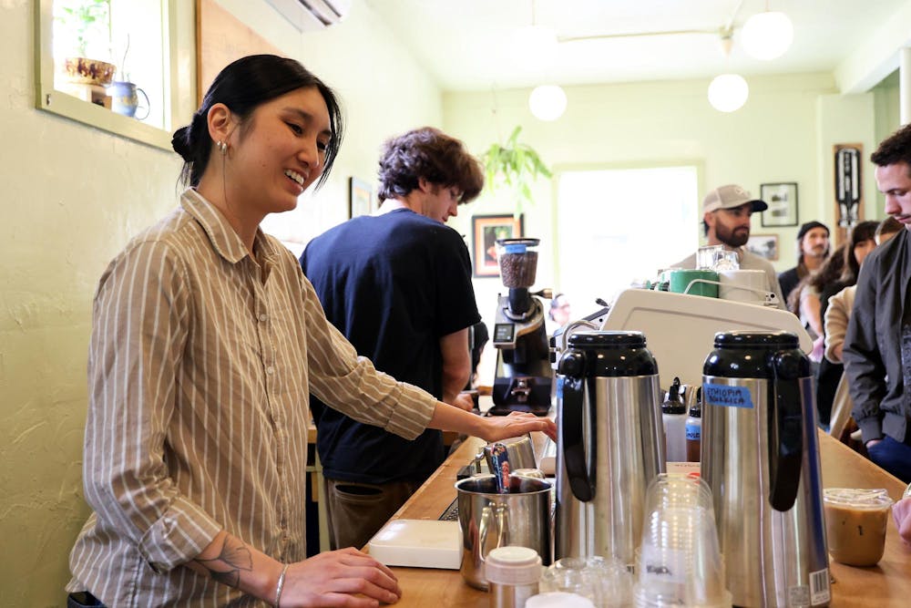 Vivi Lowery, co-owner of Lowbar greets a customer at Bushel and Peck and Lowbar in Gainesville, Fla., Saturday, Jan. 24, 2026.