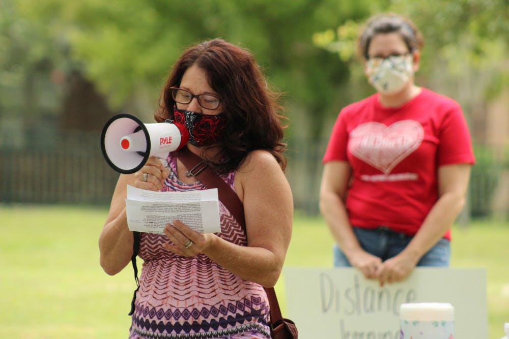Sherry Willey is a parent and middle school teacher in Alachua County. “Brick-and-mortar schools were not made with the goal of social distancing in mind,” she told those attending. She called for community collaboration for a safe reopening of schools with a focus on digital education. Willey’s step-father is currently hospitalized in critical condition with COVID-19.