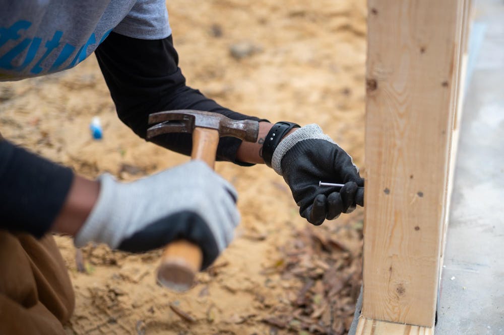 Volunteers from Habitats for Humanity work together to build a house from scratch, Saturday, Feb. 28, 2026, in High Springs, Fla.