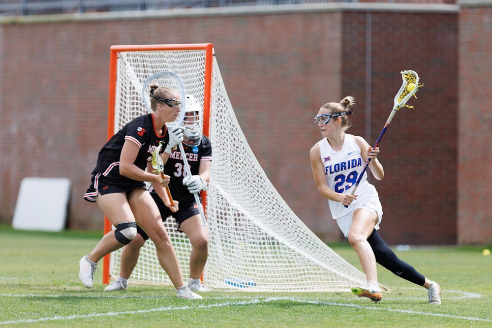 Florida midfielder Boo DeWitt (29) circles the goal during the first quarter of an NCAA women’s lacrosse gmae against Mercer, Saturday, March 07, 2026, in Gainesville, Fla.