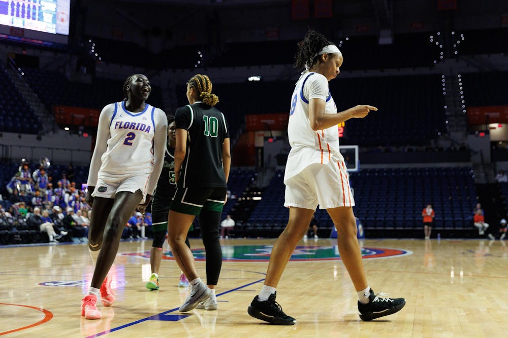 By Ryan Friedenberg | 9:29pmFlorida guard/forward Me'Arah O'Neal (8) celebrates with Florida guard Laila Reynolds (13) during the second half of a NCAA college basketball game against Jacksonville, Monday, Nov. 10, 2025, in Gainesville, Fla.