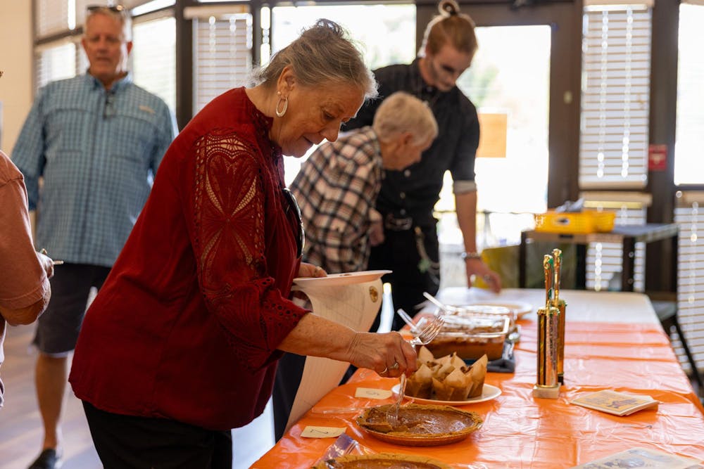 Best dish competition judge Mildred Ganstine goes down the line of dishes at the Waldo Sweet Potato Festival & Car Display in Waldo, Florida, on Saturday, Sept. 13, 2025.