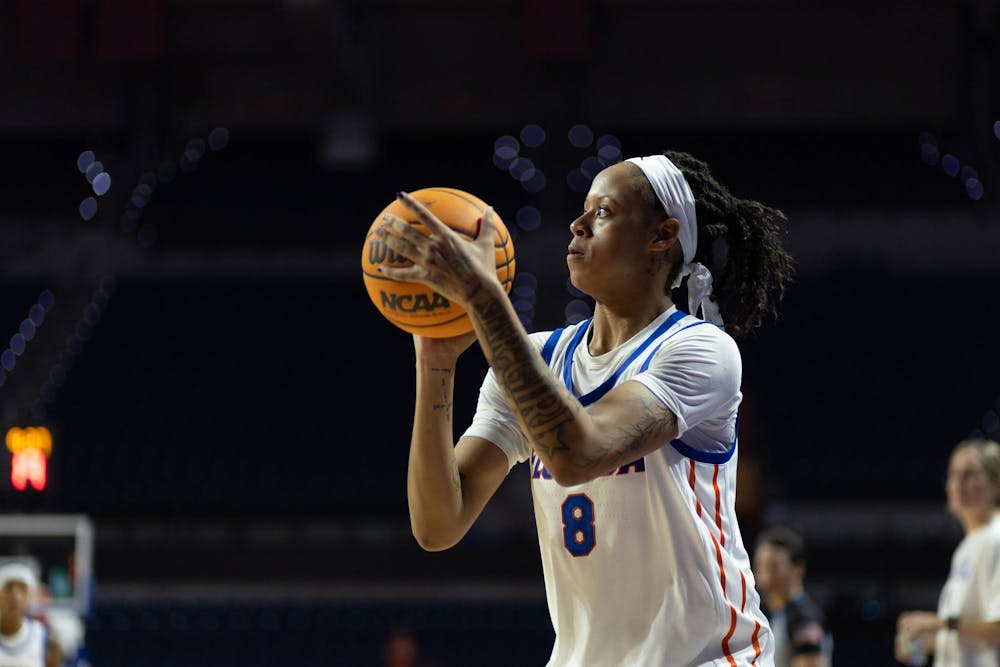 By Ryan Friedenberg | 9:19pmFlorida guard Liv McGill (23) takes a shot during a NCAA women's basketball game at the O'Connell Center on Monday, Nov. 3, 2025, in Gainesville, Fla.