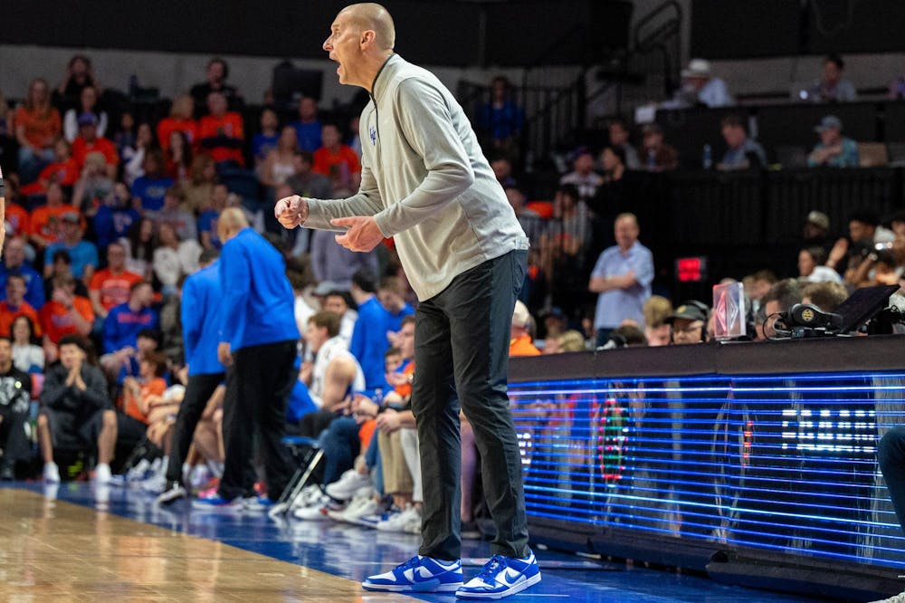 Kentucky head coach Mark Pop yells at his players during the first half of an NCAA college basketball game against Florida, Saturday, Feb. 14, 2026 at Exactech Arena in Gainesville, Fla.