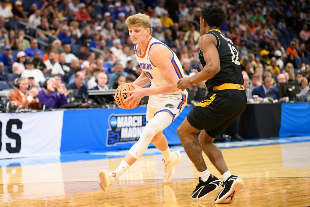 Florida forward Thomas Haugh (10) drives during the first half of an NCAA Tournament first round game against Prairie View A&M, Friday, March 20, 2026, in Tampa, Fla.
