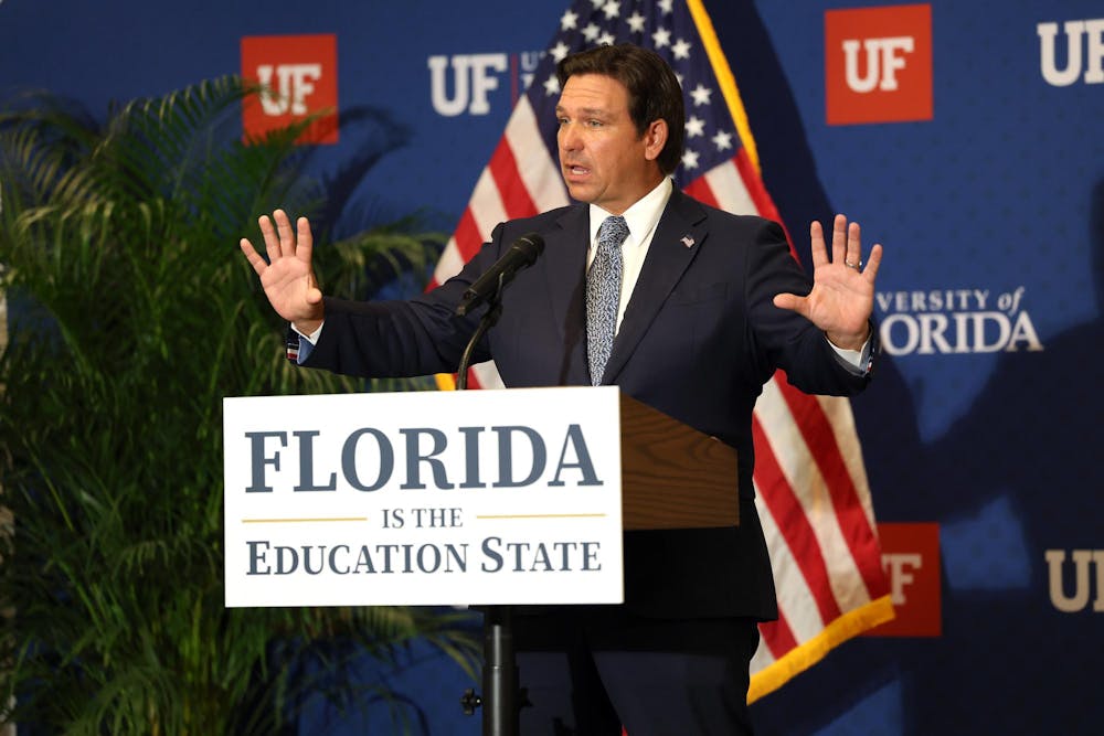 Gov. Ron DeSantis speaks at Emerson Alumni Hall on the University of Florida’s campus on Monday, Sept. 29, 2025.