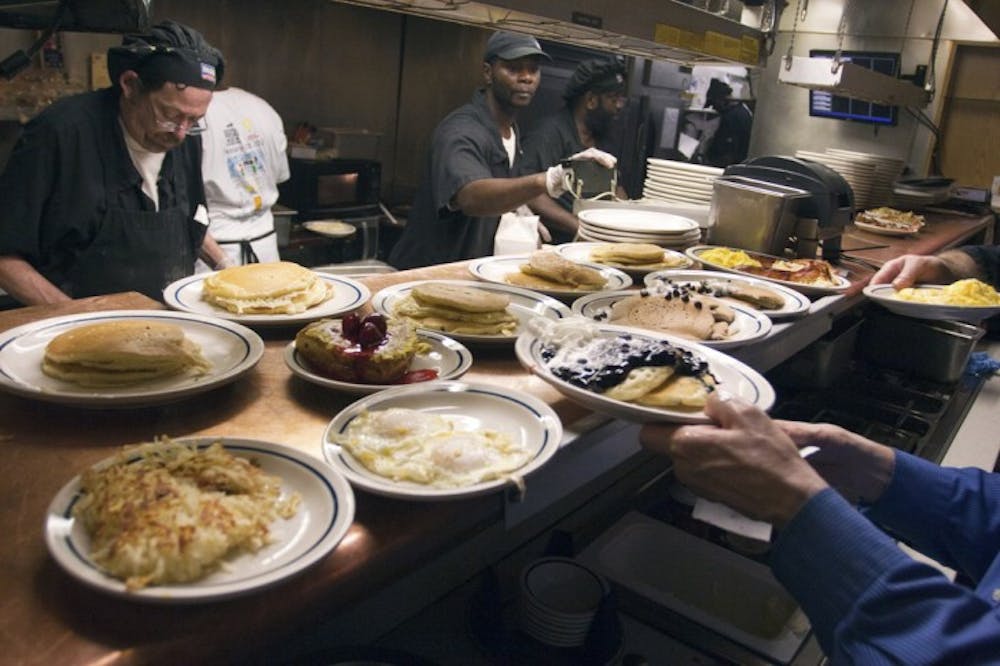 Chefs Anthony Rannazzisi and Jeff "The Heart of the City" Rivers keep up with the high order demand that comes on National Pancake Day on Wednesday afternoon at IHOP. National Pancake Day started in 2006 and works in cooperation with the Children's Miracle Network. Patrons are given a free short stack of buttermilk pancakes and asked to donate to Children's Miracle Network instead. "Hopefully someone will come in, eat some free pancakes and donate to the cause," said Jim Creasman, general manager at the IHOP located at 3625 SW 13th St. The Gainesville location gave away about 1,500 stacks last year and hoped to serve about 1,800 this year.