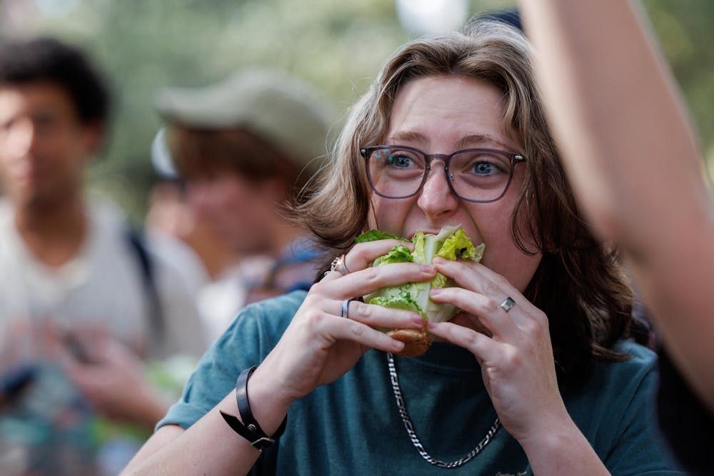 Competitors eat as much lettuce as they can during UF's lettuce eating competition, Thursday, Feb. 19, 2026, in Gainesville, Fla.