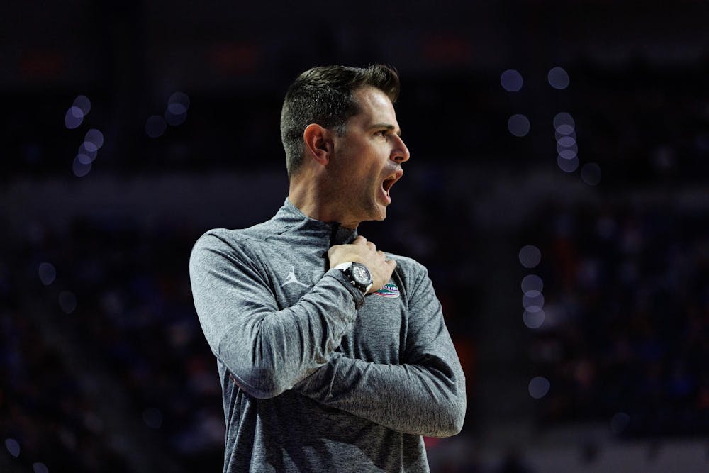 Florida Gators head coach Todd Golden during the second half of a NCAA college basketball game against North Florida, Thursday, Nov. 06, 2025, in Gainesville, Fla.
