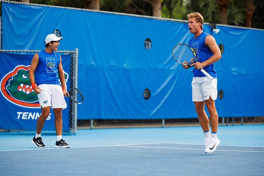By Michael Angee | Apr. 26UF tennis' Henry Jefferson celebrates during his head-to-head match against South Florida's Ettore Danesi. Their match was the only one on Saturday to go to three sets, with Jefferson sealing the Gators’ victory over the Bulls Jan. 17