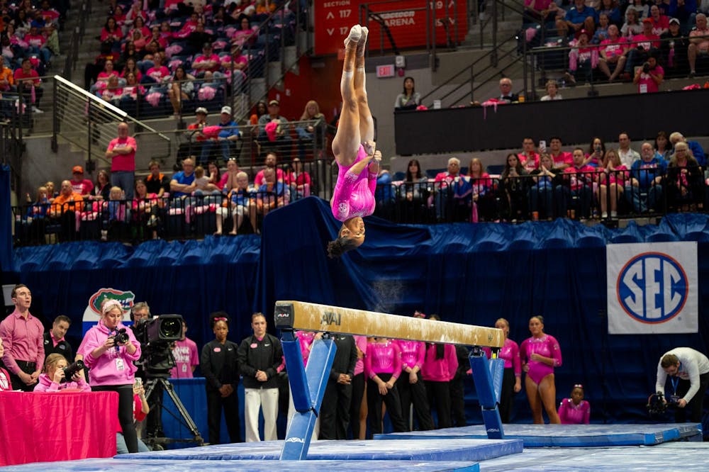 By Caroline Walsh | 10:09amFlorida gymnast Kayla DiCello performs on the floor during an NCAA gymnastics meet against Louisiana State University, Sunday, March 8, 2026, in Gainesville, Fla.