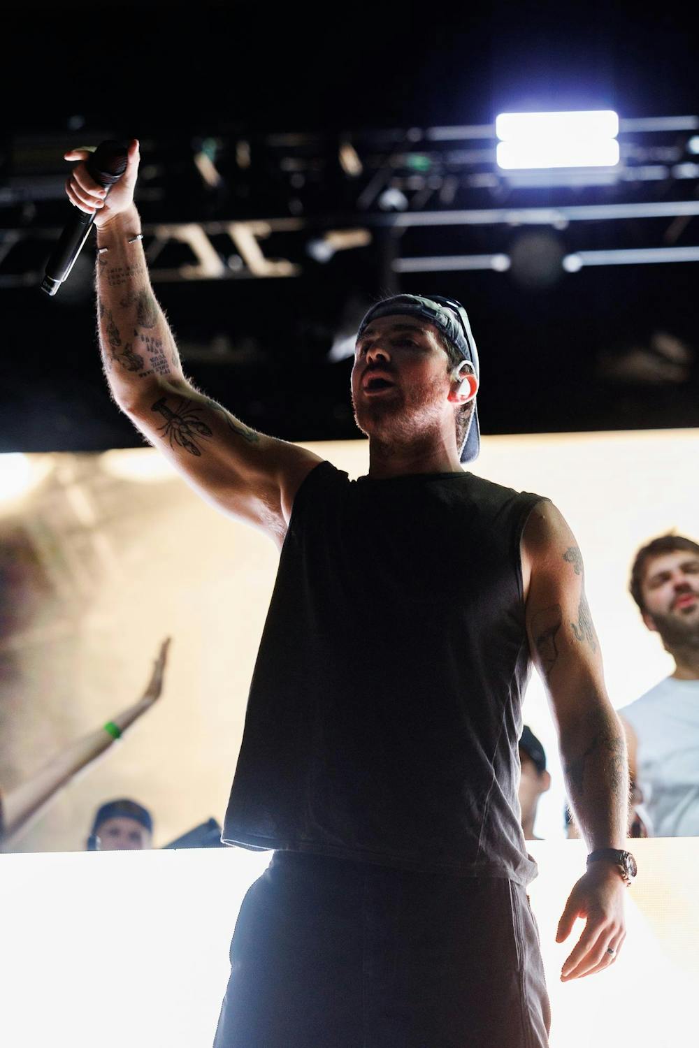 Andrew Taggart of The Chainsmokers yells out to the crowd during SwampFest, Tuesday, April 14, 2026, in Gainesville, Fla.