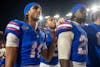 Florida quarterback DJ Lagway (2) stands with his teammates after a loss to Tennessee at Ben Hill Griffin Stadium in Gainesville, Fla. on Saturday, Nov. 22, 2025.