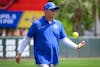 Florida head coach Tim Walton tosses a ball before an NCAA softball game against Mississippi State, Saturday, April 4, 2026, in Gainesville, Fla.