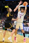 Florida guard Urban Klavzar (7) passes during the first half of an NCAA Tournament second round game against Iowa, Sunday, March 22, 2026, in Tampa, Fla.