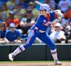 Florida catcher Jocelyn Erickson (8) bats during an NCAA softball game against Mississippi State, Saturday, April 4, 2026, in Gainesville, Fla.