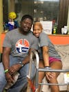 Lauren Evans sits with her father, Jerome, at UF Health Shands, where she was receiving cancer treatment. Currently cancer free, Evans attempted to break the selfie world record Sunday after the Florida soccer team's win over LSU in effort to raise awareness for pediatric cancer.